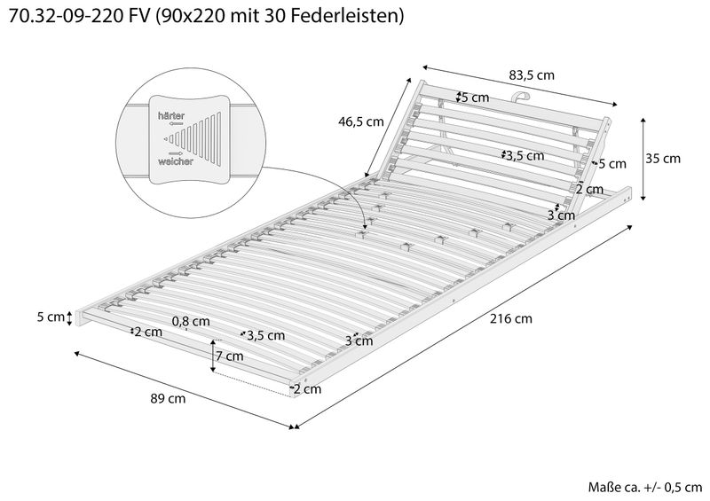 70.32-09-220 FV - Verstellbarer Federholzrahmen Liegefläche 90x220 cm