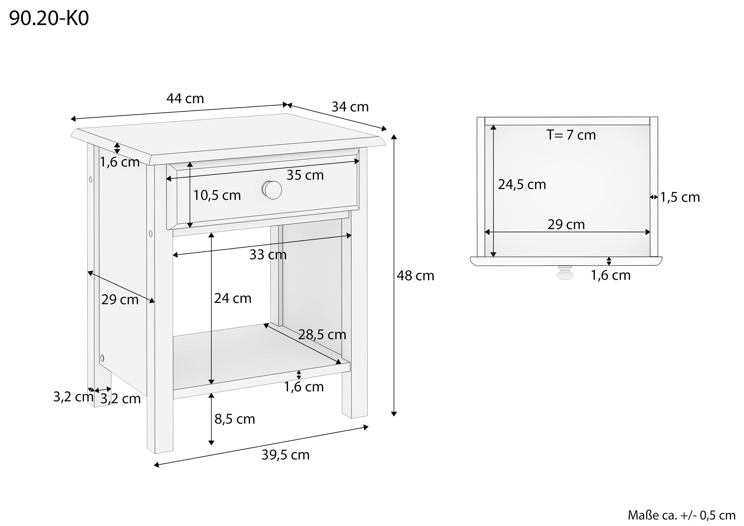 90.20-K0 - Nachttisch Kiefer natur -Eine Schublade