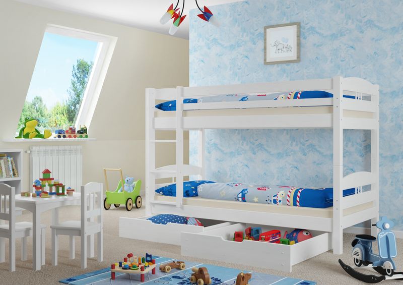 Ten children's white bunk bed variants for 90x200 mattresses in solid pine V-60.10-09W