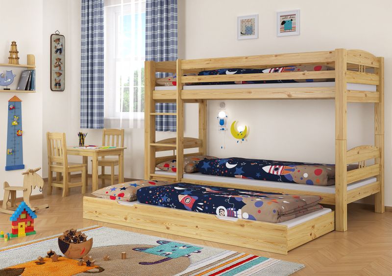 Nine children's bunk bed variants for 90x200 mattresses in lacquered pine V-60.10-09
