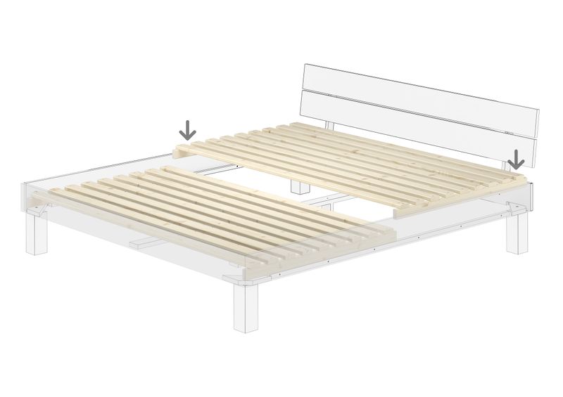 Our slatted frame is only connected by means of wooden pegs/dowels and therefore fits our bed models 60.90-18.