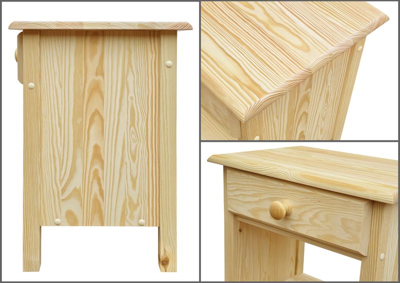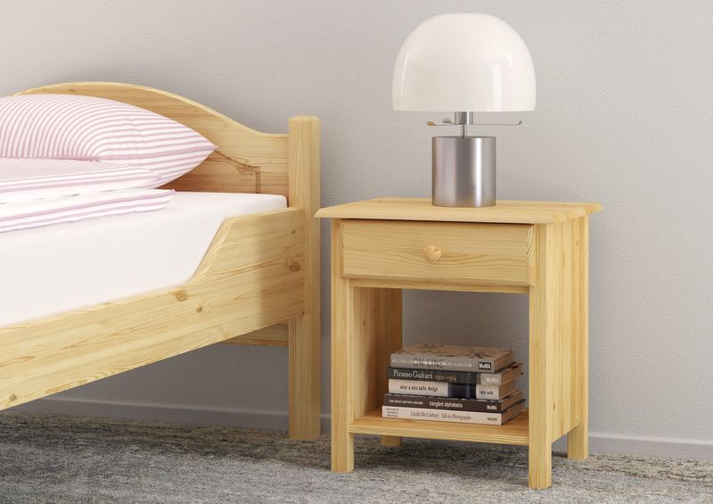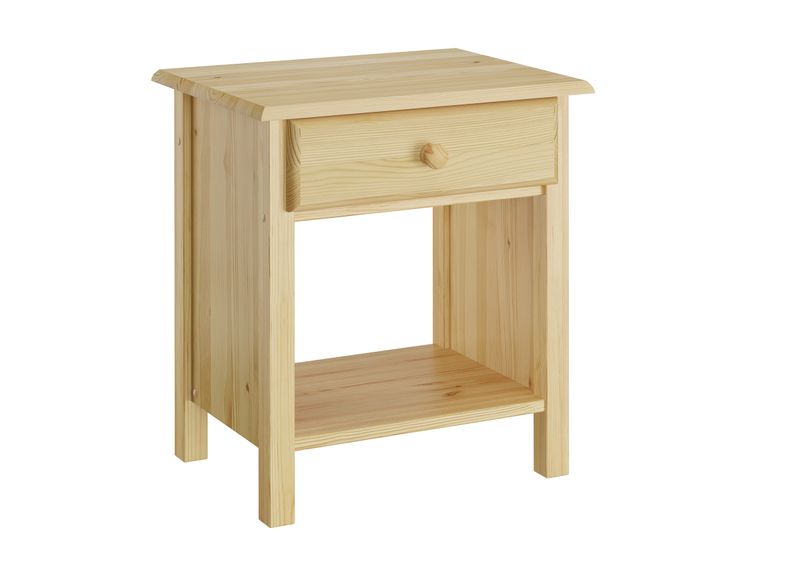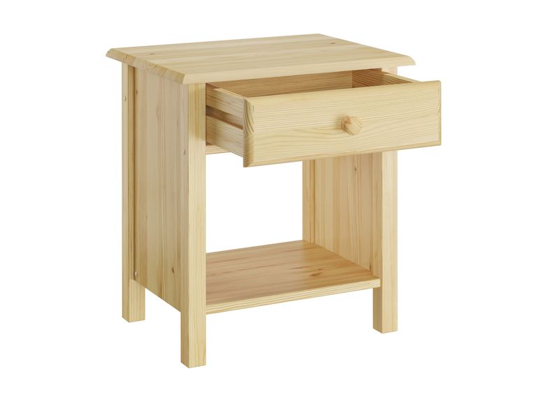 90.20-K0 Table de chevet pin massif naturel avec 1 tiroir et une grande niche