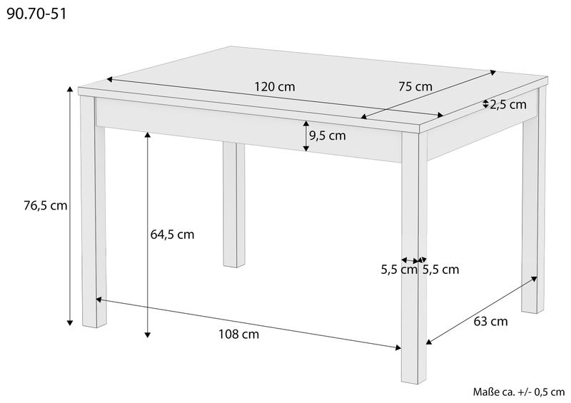 table: 120 x 80 x 75 cm (LxLxH)