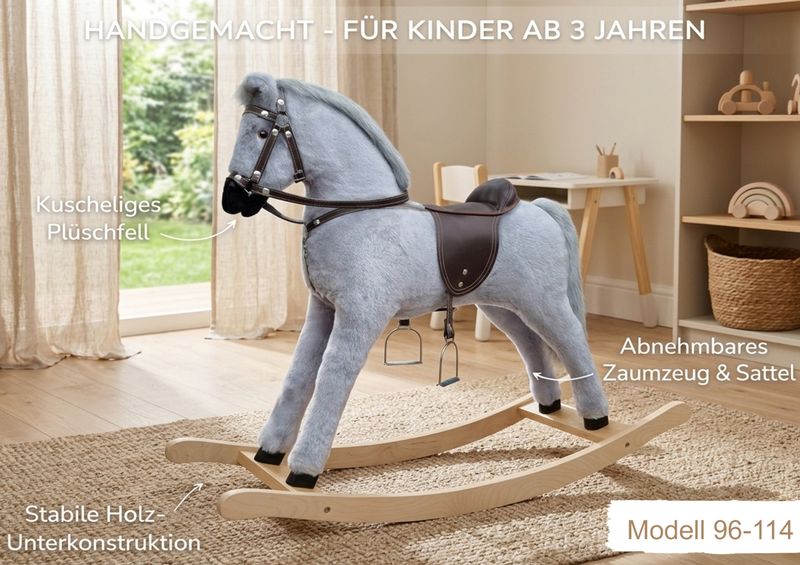 Cheval à bascule Cheval en bois Cheval en peluche gris moisissure 96-114