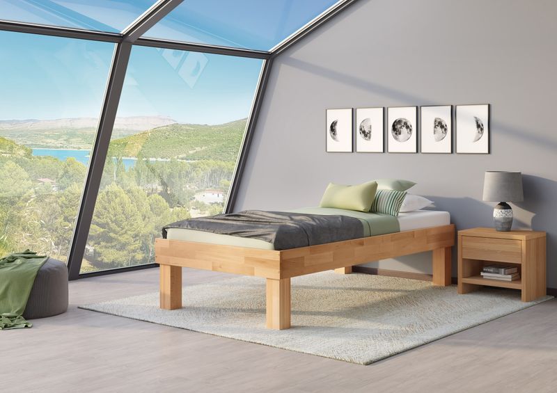 Lit simple / lit double en bois de hêtre huilé, largeur au choix, avec pieds hauts V-60.87-200HoR