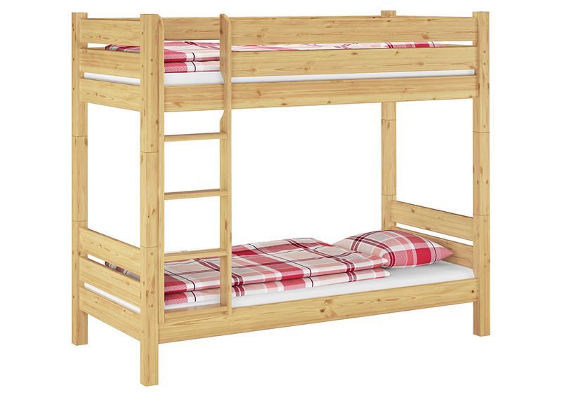 Lit superposé pour adultes en pin massif naturel, très stable et extra long, surface de couchage 90x220cm, accessoires de votre choix