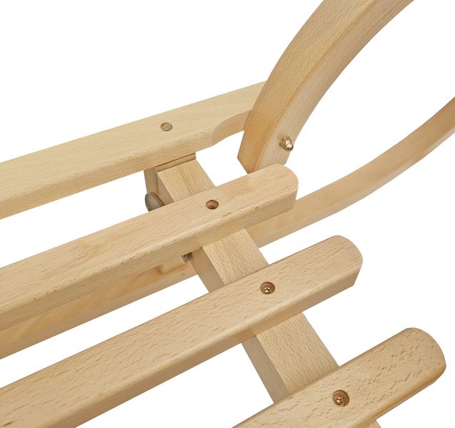 luge en hêtre massif, fabrication très stable, surfaces finement polies, vernis transparent,