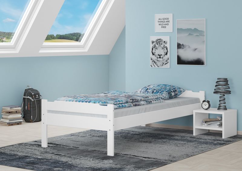 Lit simple pin massif blanc 90x200 lit enfant, accessoires au choix V-60.31-09W