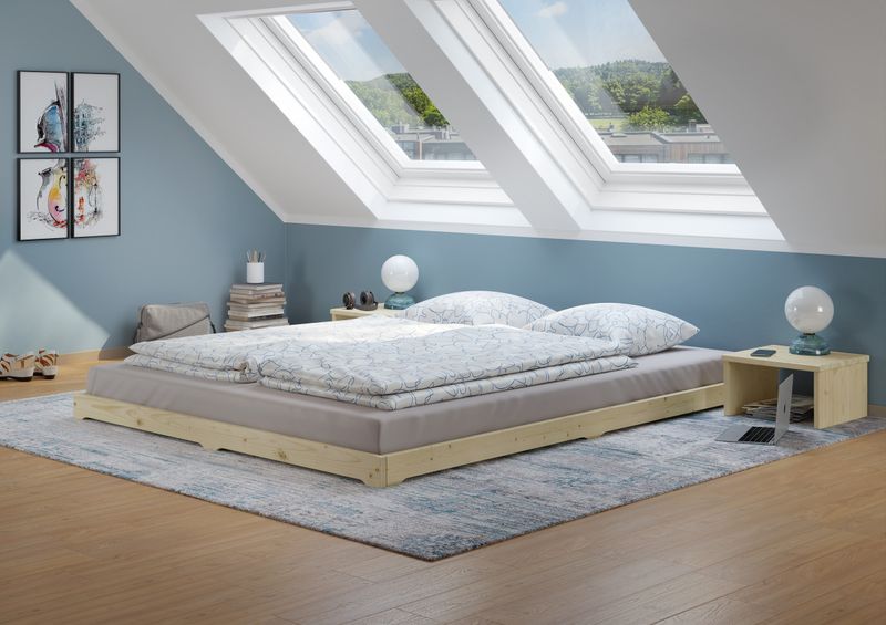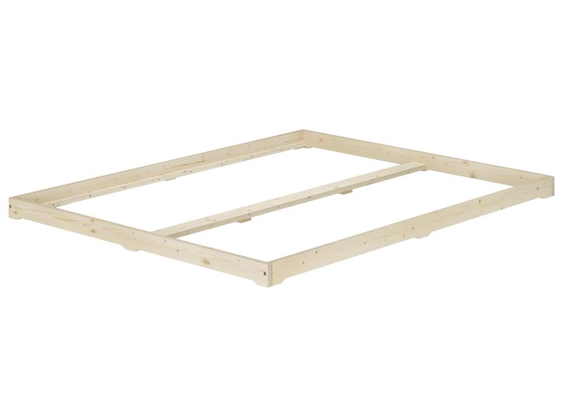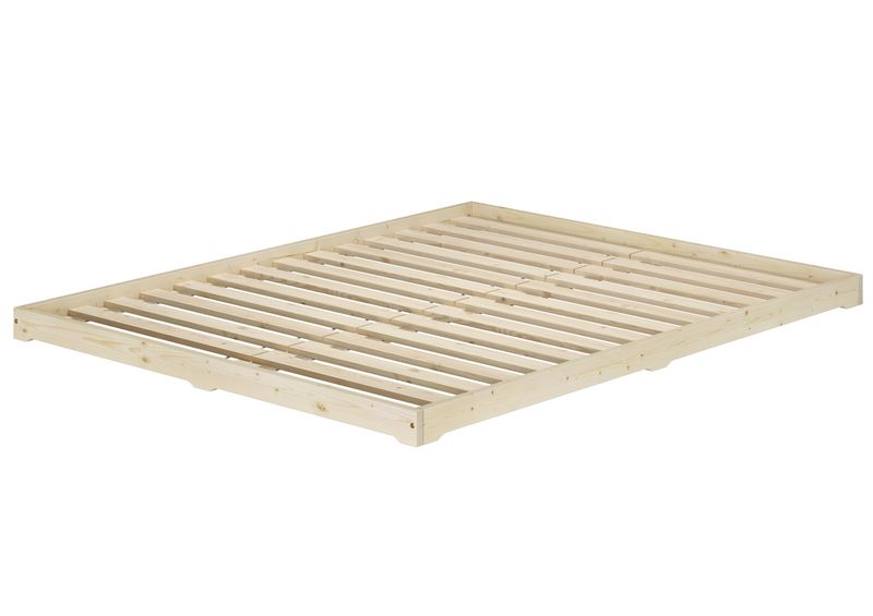 Lit futon très bas, en bois d'épicéa ou de sapin non traité, base idéale pour combiner avec futon, confortable surface de couchage double 160 x 200 cm