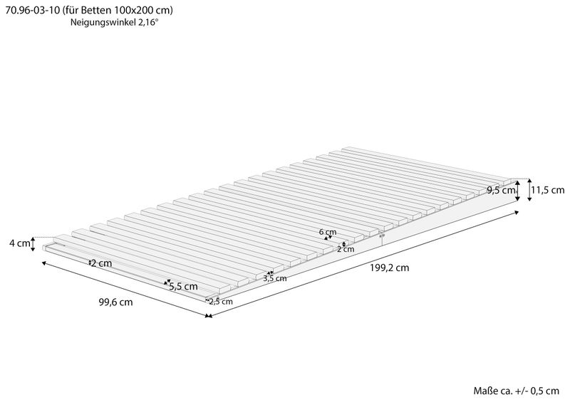 Dimensions extérieures (L x l x H) env. : 199,2 x 99,6 x 9,5 cm