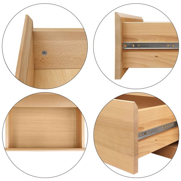 Grâce à la finition soignée avec des surfaces poncées et vernies claires ainsi que des jeux parfaitement adaptés, l'ensemble est d'une grande élégance.