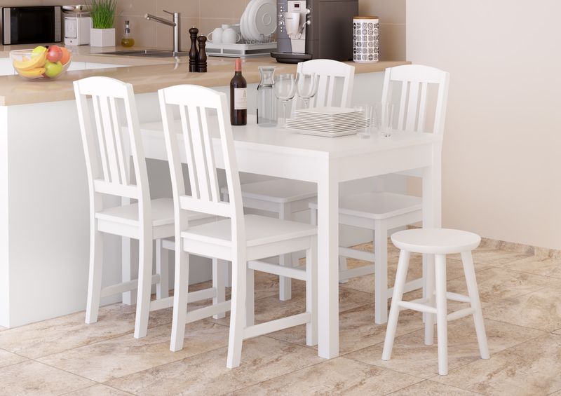 V-90.71-42 Tabouret rond en bois massif sans dossier en pin massif naturel ou laqué blanc