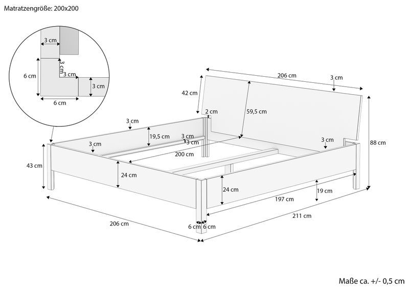 60.95-20 - Bettgestell mit starrem Rost (200x200)