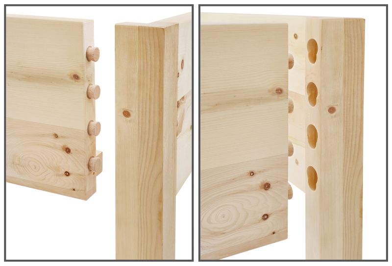Montage sehr einfach: Alle Holzteile werden einfach mit den Dübeln zusammengesteckt.