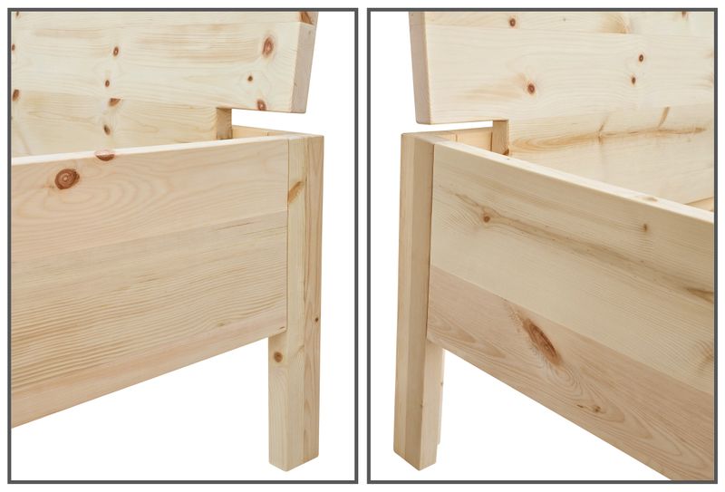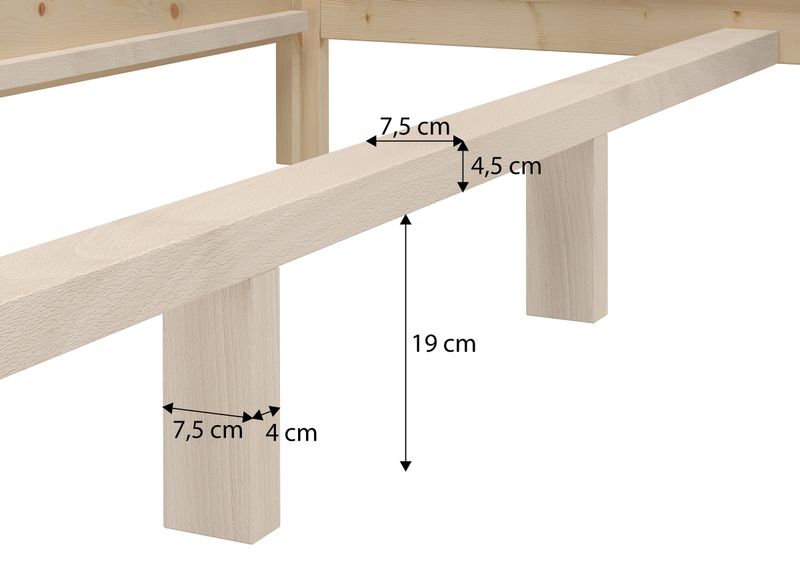 Die Auflageleisten und Mittelleisten mit Stützfüßen (für Betten ab 140) können aus anderen europäischen Holzarten hergestellt werden.
