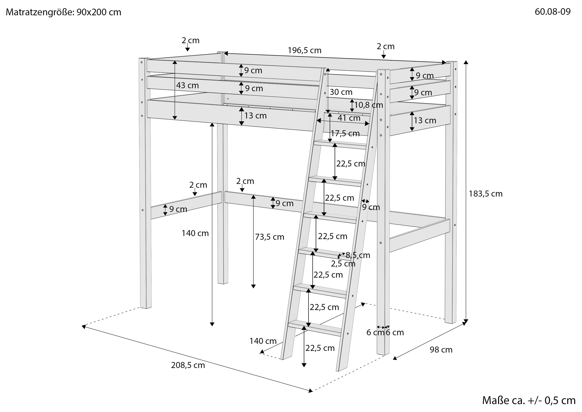 Auf der 90x200 cm großen Liegefläche schlafen Sie weit oben, während die robuste Konstruktion samt Absturzsicherung für die nötige Sicherheit sorgt.