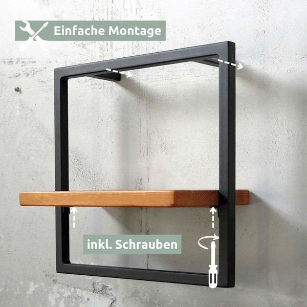 -praktisches Wandregal in kleiner Größe -in schwarzem Metallrahmen -mit hellgrau- oder naturgeölter Platte