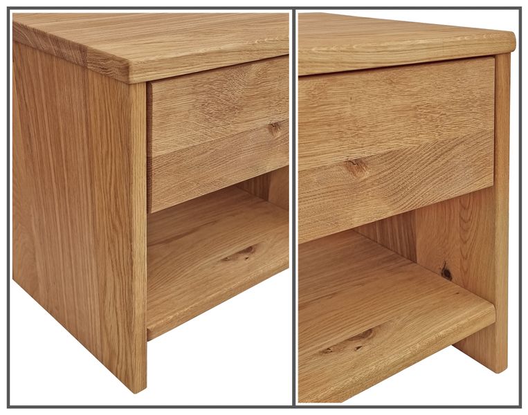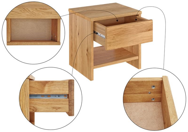 Le parti in legno del comodino sono in parte listellate, il che spiega l'aspetto bello e vivace.