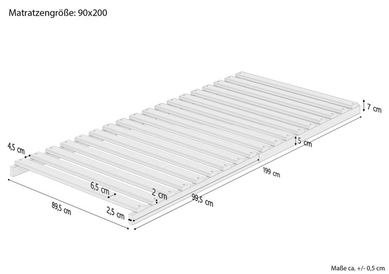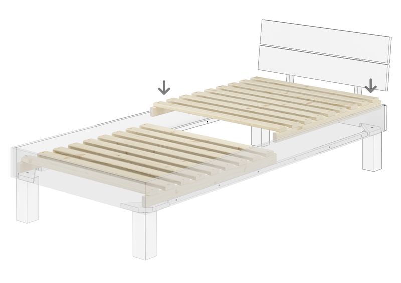 Le nostre doghe in assi di legno è collegata solo tramite pioli/ tasselli di legno e si adatta quindi ai nostri modelli di letto 60.90-09.