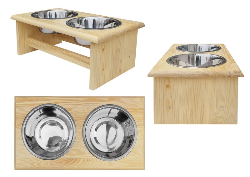 V-30.33 Supporto in legno con 2 ciotole per animali