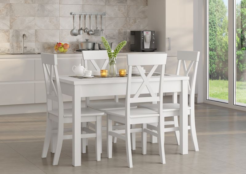 Due varianti di sedia in Pino massello per cucina e sala da pranzo bianca o laccata V-90.71-23