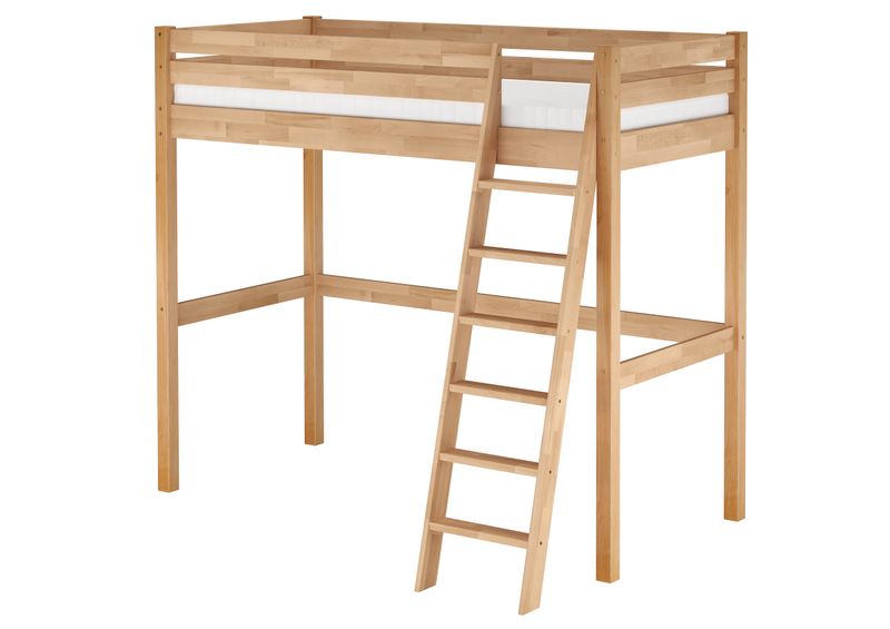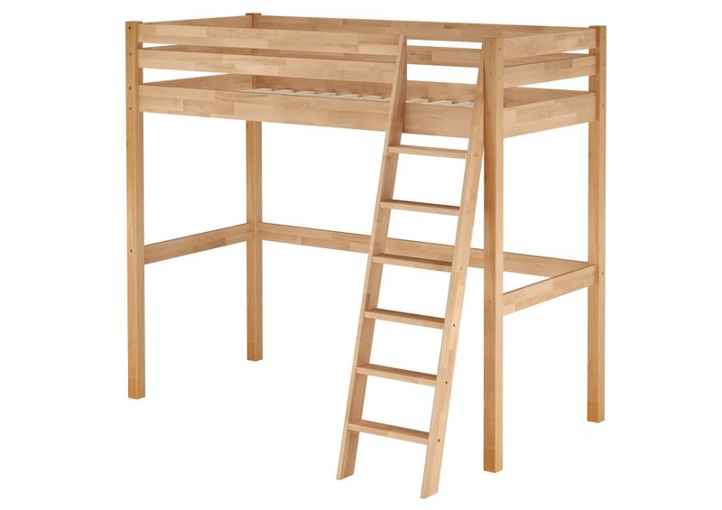 Questo letto a soppalco in faggio massiccio sfrutta perfettamente l’altezza della stanza e restituisce prezioso spazio sul pavimento.