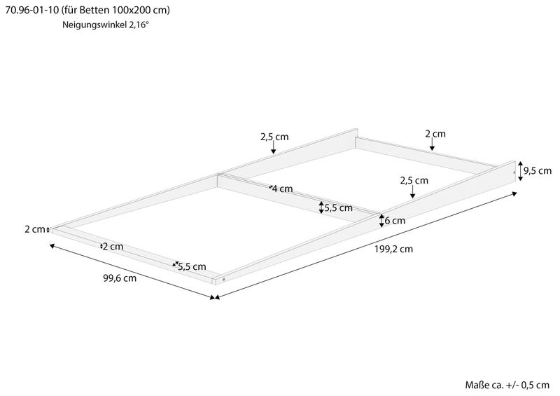 Dimensioni esterne (LxPxA) ca.: 199,2 x 89,6 x 9,5 cm