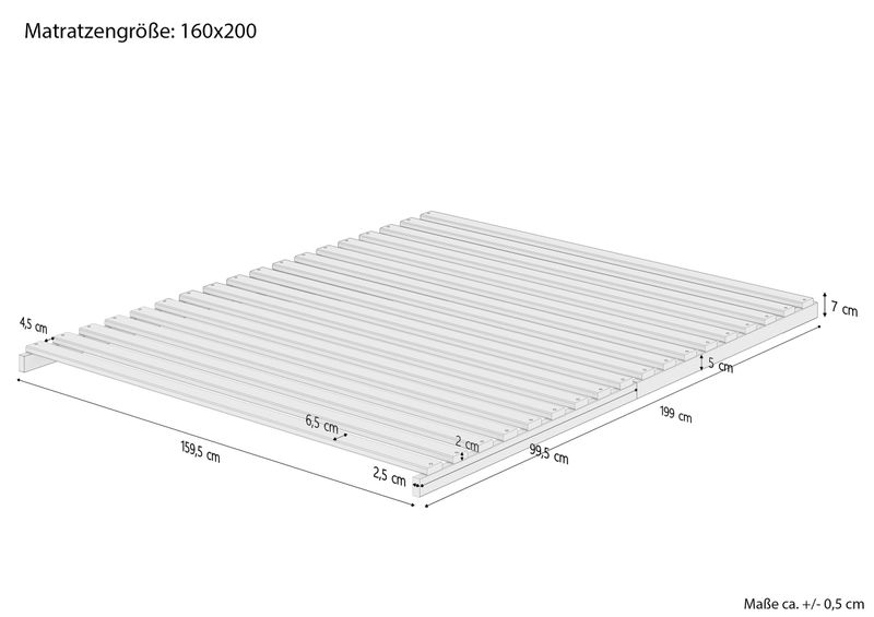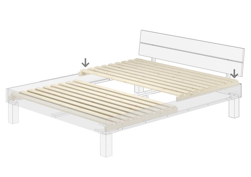 Le nostre doghe in assi di legno è collegata solo tramite pioli/ tasselli di legno e si adatta quindi ai nostri modelli di letto 60.90-16.