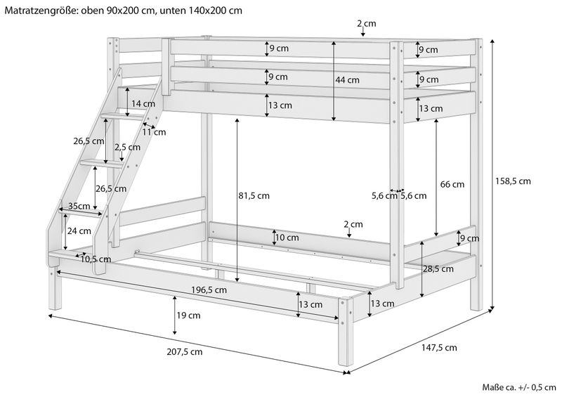 Grazie alla sua solida lavorazione, questo letto combinato in legno è adatto anche agli adulti.