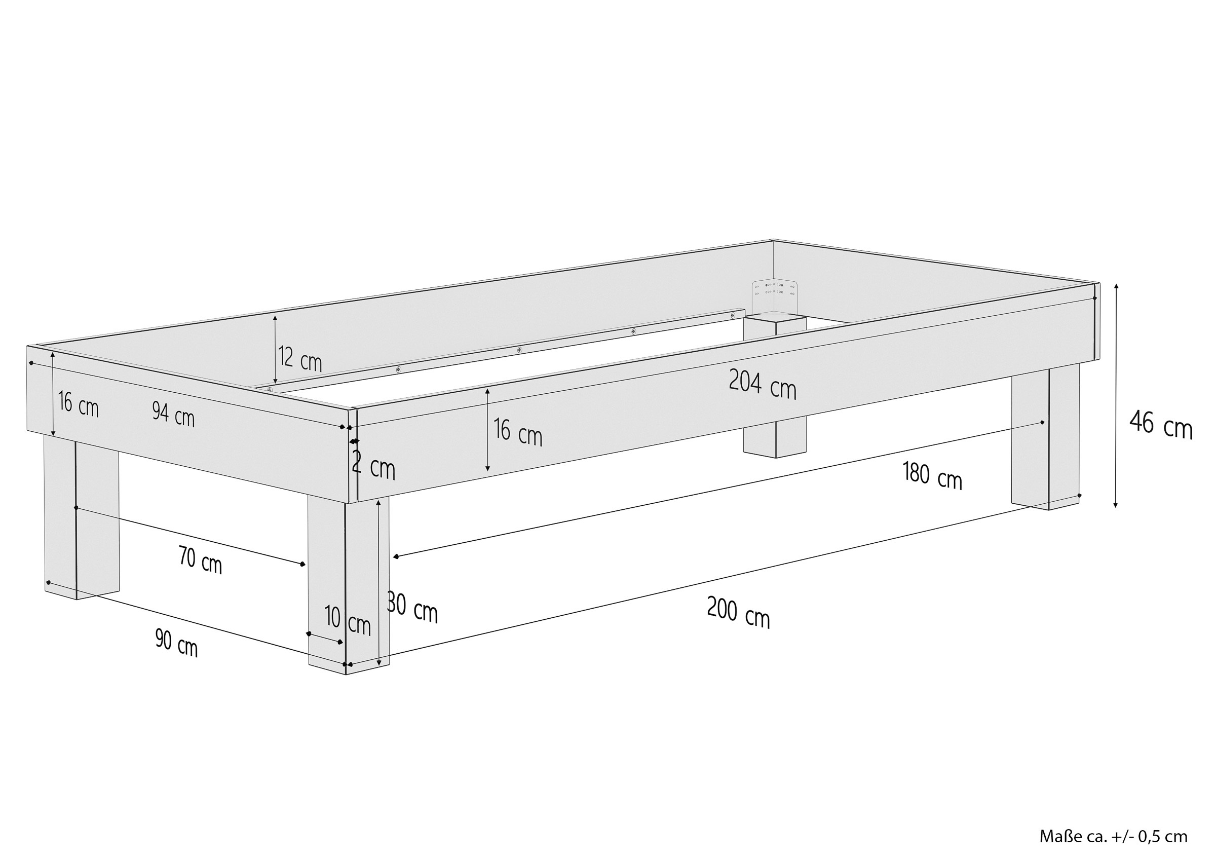 Superficie di riposo 90 x 200 cm, dimensioni esterne ca. 94 x 204 cm