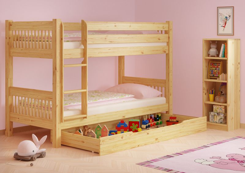 V-60.12-09Ni70 Etagenbett für Kinder, massives Kiefernholz, -Zubehör wählbar