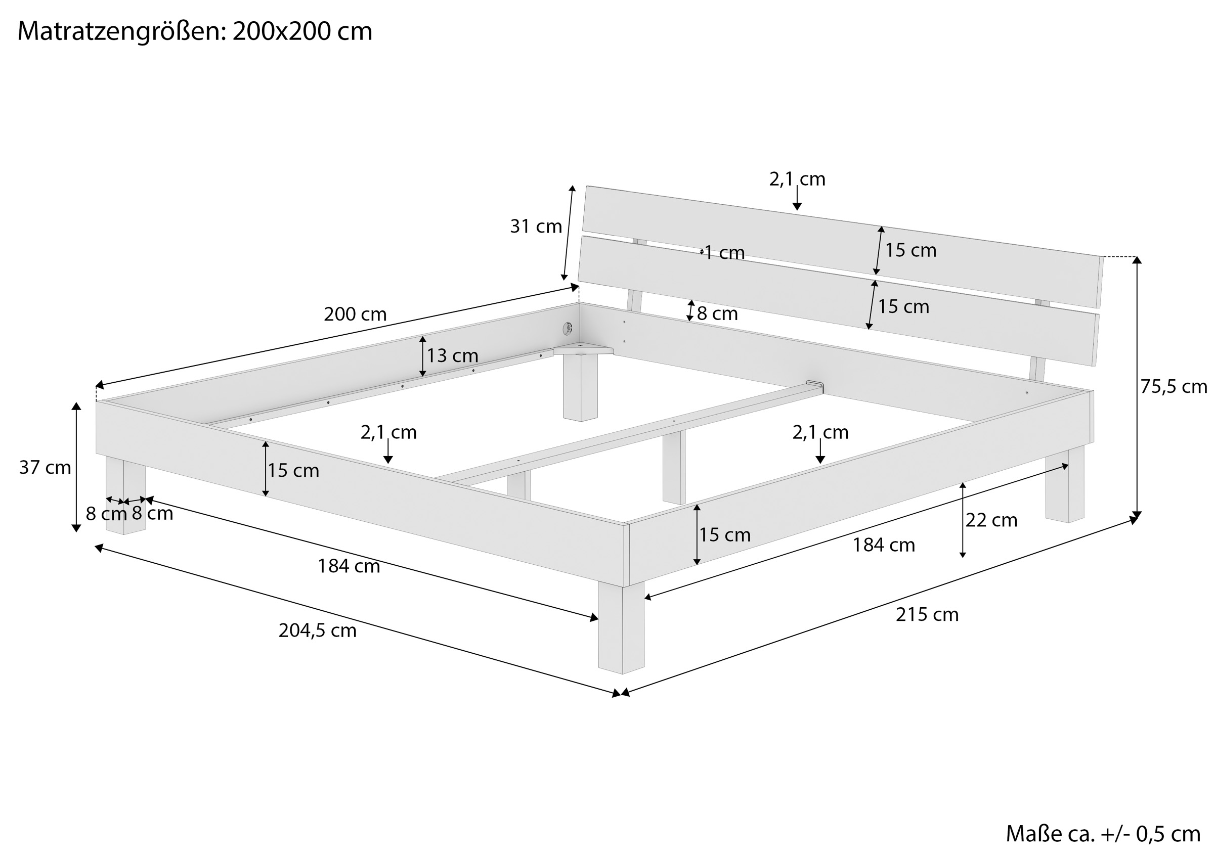 Dieses Holzbett ist genau dafür konzipiert und bietet Ihnen eine großzügige Liegefläche von 200x200 cm, damit