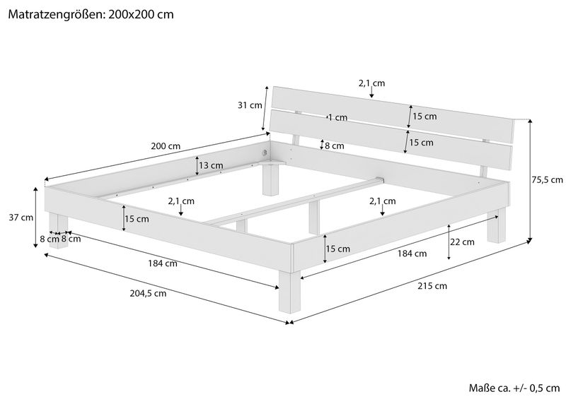 Außenmaß (BxLxH) ca.:204,5 x 215 x 75,5 cm