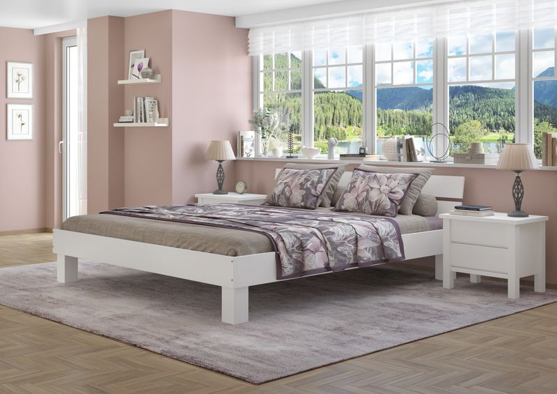 V-60.86-20-220W - Doppelbett Buche weiß Überlänge Liegefläche 200x220cm - wählbares Zubehör