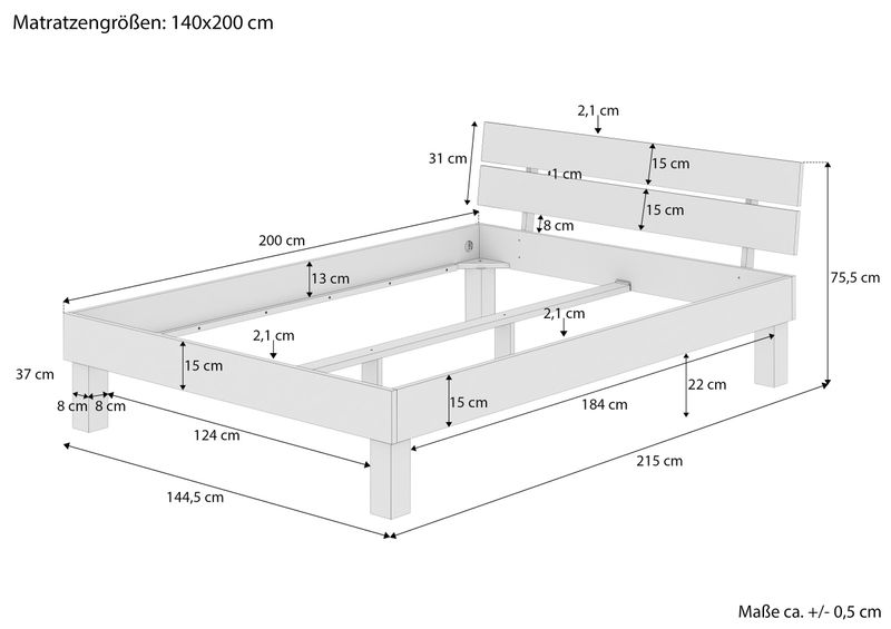 Außenmaß (BxLxH) ca.:144,5 x 215 x 75,5 cm
