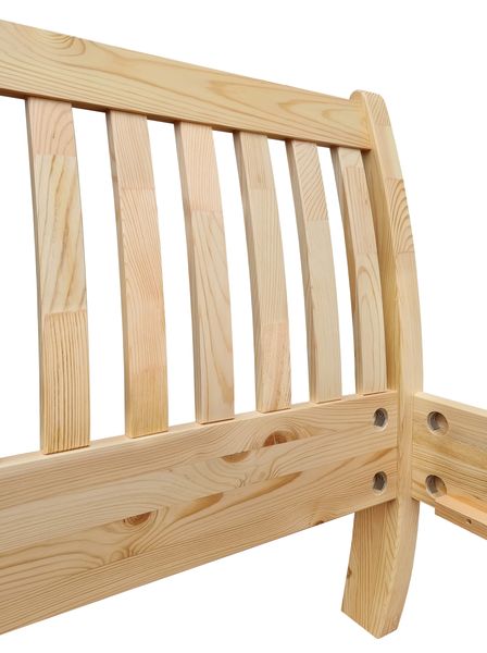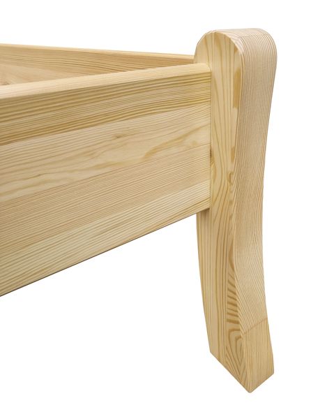 Unser Kiefernholzbett ist stabil verarbeitet, die Oberfläche fein geschliffen und mit seidenmattem Wasserlack versiegelt.