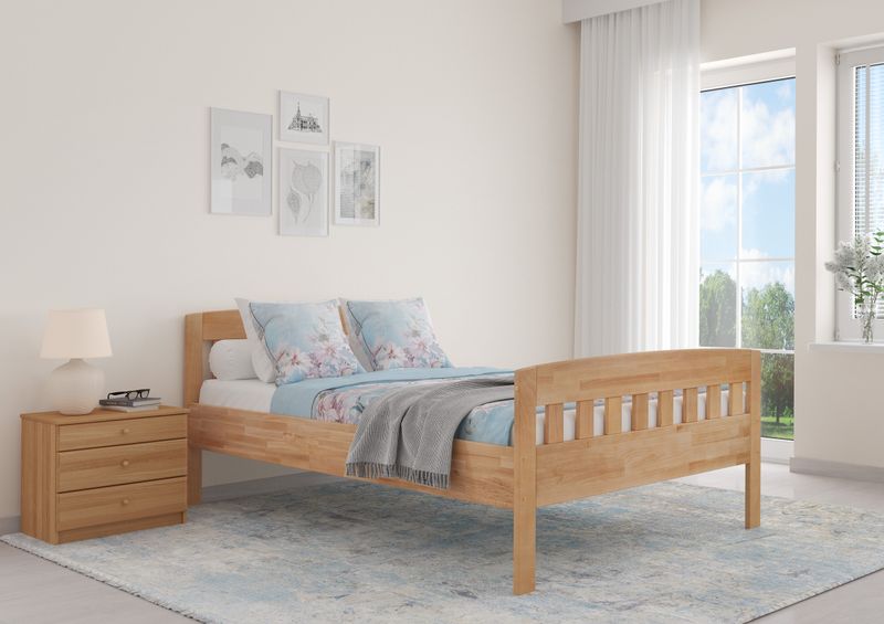 Dieses gemütlich anmutende und langlebige Doppelbett wird aus massivem Buchenholz gefertigt.