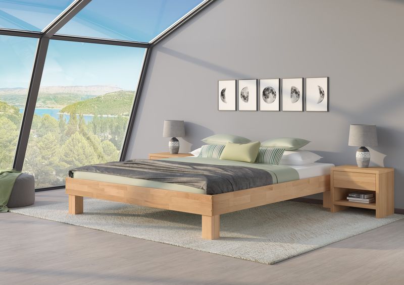 Kingsize Holzbett als großes Ehebett oder Großfamilienbett ohne Kopfteil - ideal bei Mansardenzimmer