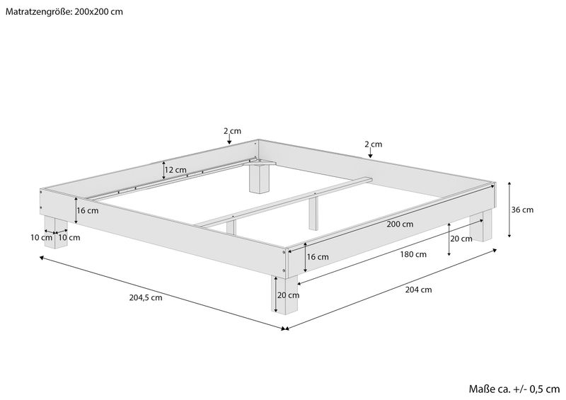 Außenmaße: ca. 204 x 204 x 36 cm (B/L/H)