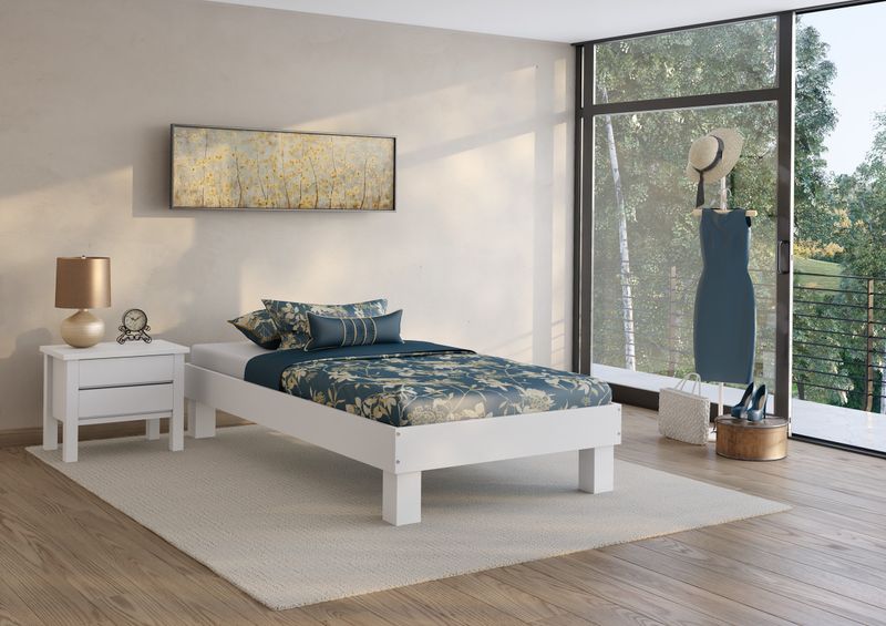 V-60.87-10W- Bett ohne Kopfteil Buche waschweiß Liegefläche 100x200 cm -Bettgestell mit wählbarem Zubehör