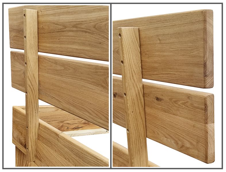 Die Oberfläche des Holzbettes ist abschließend mit einem pflanzlichen Öl gestrichen, was die Holzstruktur betont und das Material gleichzeitig schützt.