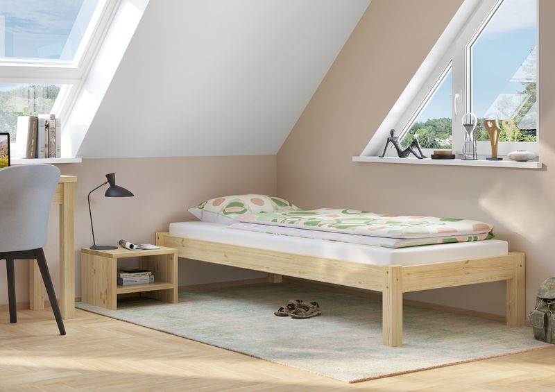 Wer ein ehrliches Möbelstück sucht, findet in diesem Einzelbett aus massiver europäischer Kiefer