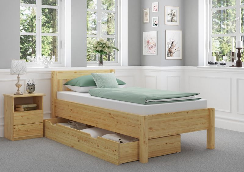 V-60.55-09 - Einzelbett Kiefer Liegefläche 90x200 cm -Bettgestell mit wählbarem Zubehör