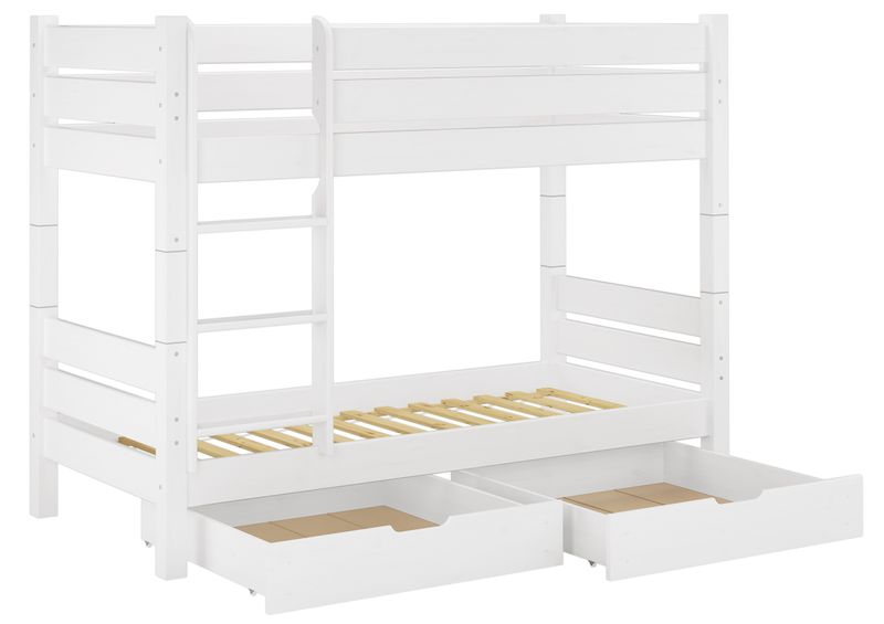 V-60.16-08-190WT80 - Etagenbett Kiefer waschweiß Liegefläche 80x190 cm, Nische 80 cm Teilbar in zwei Einzelbetten - Zubehör wählbar