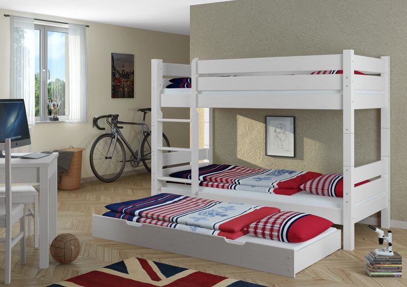 V-60.16-08-190WT80 - Etagenbett Kiefer waschweiß Liegefläche 80x190 cm, Nische 80 cm Teilbar in zwei Einzelbetten - Zubehör wählbar