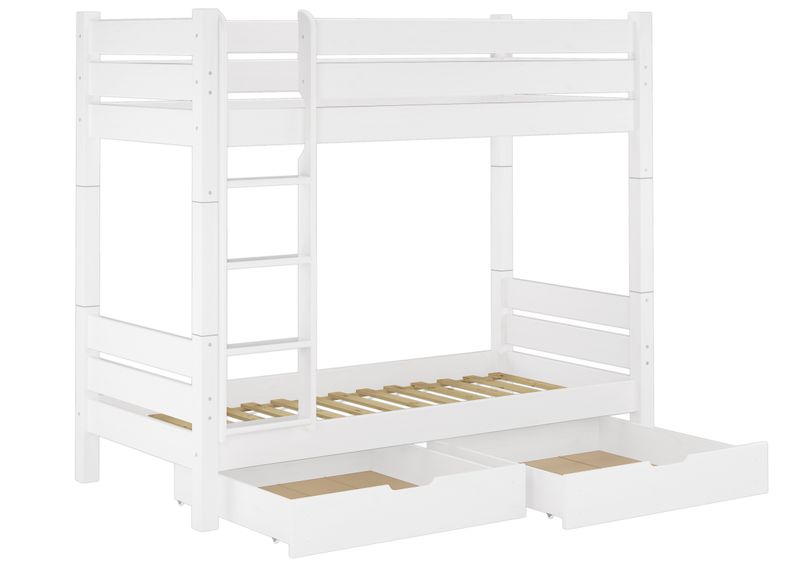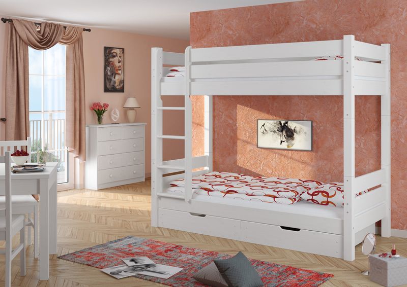 V-60.16-08-190WT100 - Etagenbett Kiefer waschweiß Liegefläche 80x190 cm, Nische 100 cm Teilbar in zwei Einzelbetten - Zubehör wählbar