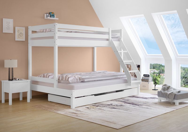 V-60.18W-09-14 - Etagenbett Kiefer weiß Liegefläche 90x200 cm oben und 140x200 cm unten Nische 81,5 cm -Zubehör wählbar