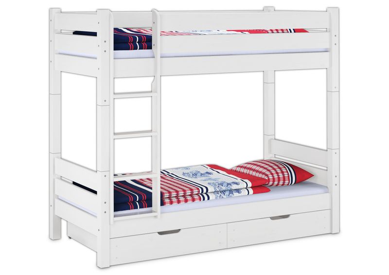 Etagenbett 90 x 200 cm Extra Stabil Kiefer Massiv Weiß Nische 100