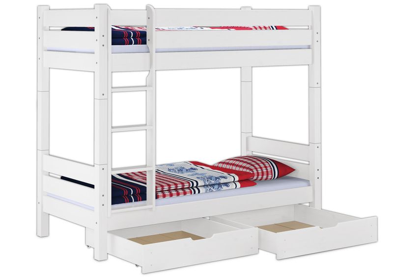 Etagenbett 90 x 200 cm Extra Stabil Kiefer Massiv Weiß Nische 100