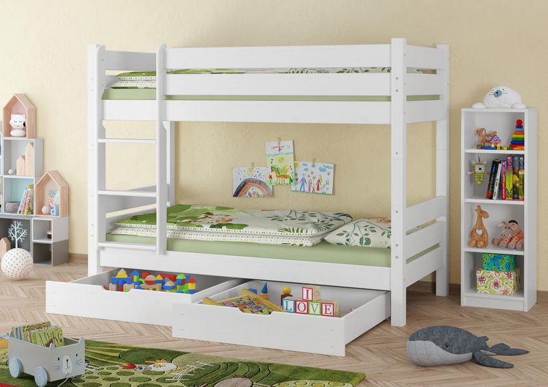 V-60.16-09WT80 - Etagenbett Kiefer waschweiß Liegefläche 90x200, Nische 80 cm Teilbar in zwei Einzelbetten - Zubehör wählbar